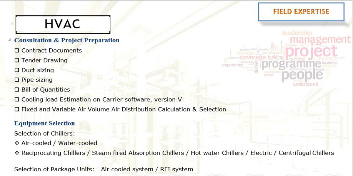 Our mission is to accomplish loyalty and appreciation of Private, Corporate, Semi-Government & Government project in MEP & HVAC engineering field. We further intend to develop a business friendly environment with our clients which will help them to increase their earning potential.